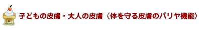 この皮膚の働きをバリヤ(防衛)機能といいます。このバリヤ機能は、表皮の内の角層にあります。 表皮の厚さは0.1mmと薄いものですが、子どもは これよりずっと薄くなっています。