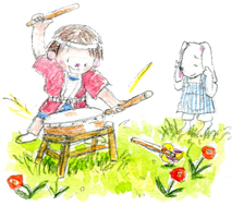 卒園してしまうと、子供たちにとっても親にとっても、何となく敷居の高くなってしまいがちな保育園。卒園してからもずっと子供たちの成長を見守りたい、かかわりをもち続けたいという思いや、地域の子供たちとももっと交流を広げたいという主旨から、平成元年、地域活動推進事業の取り組みを受けて発足したのが「太鼓をたたいて遊ぼう会」です。今年で12年目をむかえます。 学区域は、高砂・柴又・鎌倉・青戸・金町・細田・新宿など広範囲で、小学1年生から6年生まで卒園児に限らず、約25名の子供たちが参加してくれています。 「太鼓をたたいて遊ぼう会」では高齢者施設を訪問したり、地域のバザーの開幕太鼓をたたいたり、地域の盆踊りの太鼓をやぐらの上でたたいたりと、地域に根づいた活動をしています。また高砂保育園の1月の「風の子祭り」で、今まで練習してきた太鼓の成果を発表して修了となります。9月から募集します。お問い合わせ下さい。