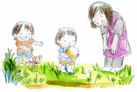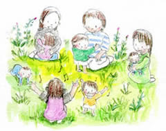年齢別のクラスに分れ、日本の伝統遊びであるわらべうたを、世代を超えてみんなで楽しみます。わらべうたを通して、親子のふれあい遊びを楽しみましょう。※毎週(月)10時〜11時
