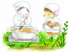 近所の公園を利用して、地域の方々や公園で遊んでいる子ども達と、保育園お子ども達と一緒に遊びます。手遊びやぺープサート、紙芝居など、一緒に歌ったり遊んだり、保育園の遊びをご紹介します。※不定期(月)葛飾区北公園にて