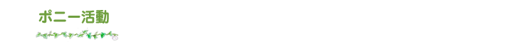 7,8月を除く毎月一回、保育園にポニーが遊びに来ます。 エサをあげたり、たづなを引いてあるかせてみたり、写真撮影など色々な活動に取り組んでいます。ポニーとの触れ合いを楽しんでみてください。詳しくは、ポスター又はお電話でお問い合わせ下さい。