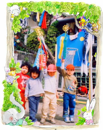子ども達は誇らしげに、作ったこいのぼりを風にたなびかせています。