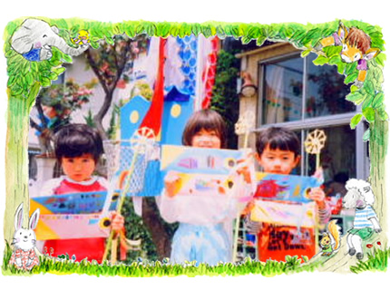 子ども達は誇らしげに、作ったこいのぼりを風にたなびかせています。