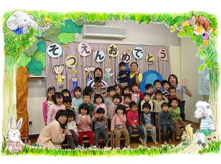 それぞれが持っているそれぞれの種を咲かせるため一歩一歩力をつけてきています。私たち大人も同じですね〜!小学校へ旅立つぞうくみさんに”かんぱ〜い!”