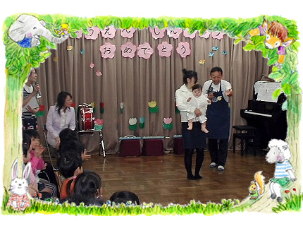 新入園児の子どもたちを迎え、新年度がスタートいたしました。ぱぱやままに抱っこされて、にこにこ顔の子どもたち。”進級・入園式”の始まりです。
