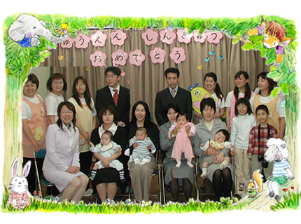 新入園児の子どもたちを迎え、新年度がスタートいたしました。ぱぱやままに抱っこされて、にこにこ顔の子どもたち。”進級・入園式”の始まりです。