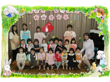 新入園児の子どもたちを迎え、新年度がスタートいたしました。ぱぱやままに抱っこされて、にこにこ顔の子どもたち。”進級・入園式”の始まりです。