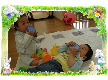 ひよこ組 両手で目的の物をつかめるようになりました。”もてた〜〜!”