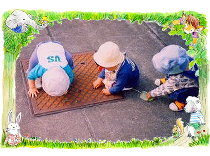 ひよこ1組 マンホールの穴に、拾ってきた木の実を落としてあ〜そぼ!