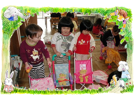 うさぎ組 赤ちゃんごっこ〜ベビーカーに赤ちゃん乗せてお出かけです。