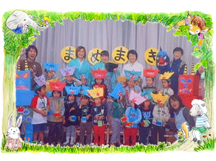 今年は平年以上に雪の日が多く、寒い日が続きます。保育園では節分に豆まきを行ないました。お腹の中にいる鬼を描き、大鬼に貼り付け、その鬼めがけて豆をまきました。と、そのうち本物の?鬼が出現!年長組さんのお陰でやっつけることが出来ました。今年も健康な一年でありますように!と祈りました。