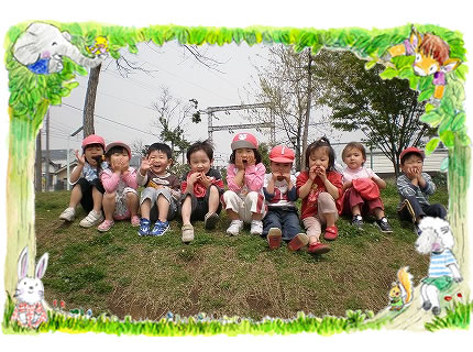 新入園児を迎え、そして各クラスの子ども達は進級し自信に満ち溢れています。仮園舎での生活が3月下旬から始まりました。子ども達の生活の安定、気持ちの安定を第一に安全で楽しみな毎日を送って行く為、保育を組み立てています。これまで遠く感じていた公園も仮園舎か手の届く範囲となったり、新公園の発見があたりしています。