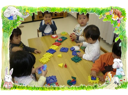 梅雨の真っ只中に、晴れ間を充分生かし、散歩に出かけている毎日です。室内では手先の遊びなどに集中できるように環境を整えているところです。さわったり、にぎったり、操作したり、と子どもたちは指先で考えています。子ども達の真剣な眼差しに・・・脱帽!