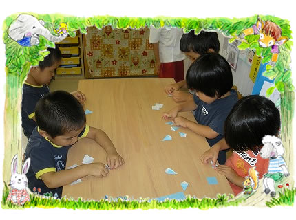 ひつじ組 小さな折り紙に挑戦中!アイロンかけも忘れずに。