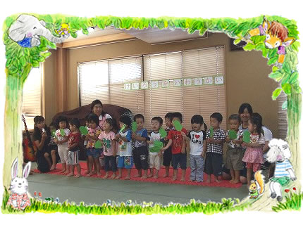 「えんどまめ そらまめ」を歌いながら演じました。