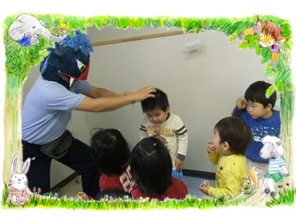 今年は暖かい節分でした。 「豆まき」では仮園舎に鬼が登場し 力強いぞう組さんの子どもたちが 豆をまき、からだ中で追い立ててくれました。 途中ひつじ組の担任がさらわれそうになると ひつじ組男児が応戦。 鬼はすたこらさっさと逃げていきました。