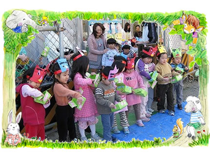 今年は暖かい節分でした。 「豆まき」では仮園舎に鬼が登場し 力強いぞう組さんの子どもたちが 豆をまき、からだ中で追い立ててくれました。 途中ひつじ組の担任がさらわれそうになると ひつじ組男児が応戦。 鬼はすたこらさっさと逃げていきました。