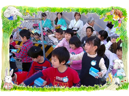今年は暖かい節分でした。 「豆まき」では仮園舎に鬼が登場し 力強いぞう組さんの子どもたちが 豆をまき、からだ中で追い立ててくれました。 途中ひつじ組の担任がさらわれそうになると ひつじ組男児が応戦。 鬼はすたこらさっさと逃げていきました。