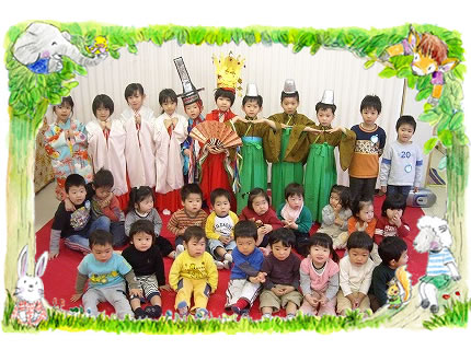 温かな日差しが、春の訪れを予感させる候となりました。 各ご家庭で、ひなまつりをお祝いなさいましたか? 保育園では、日本の古くから伝わる伝承あそびや行事を 子ども達に伝えたいと思っています。 1月にはこま回し、新年会での獅子舞。2月は豆まき。3月はひなまつり会。 等々、全てとは参りませんが、子どもから子どもへ伝え合い、大人になった時、次代を担う子らへと脈々と伝承されることを希望しています。 当園の年長組が踊る「うれしいひなまつり」は60年以上前より 毎年踊られてきました。ひなまつり会でお姉さんの踊る優雅な姿に おちびさんたちもあこがれ「私は三人官女になる〜」と今から役の 取り合いをする子ども達です。