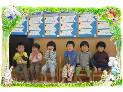 さわやかな5月の風に吹かれこいのぼりが園庭の上空を泳いでいます。幼児各クラスでは、手作りのこいのぼりを製作し「子供の日」の集会で紹介されると自信満々!の笑顔で聞き入っていました。子供たちが笑顔ですごせる様 私たち大人の精一杯を行っていきましょう。