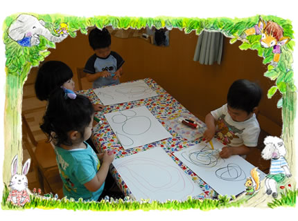 うさぎ組 なぐり描きから、丸も上手に描けるようになりました。