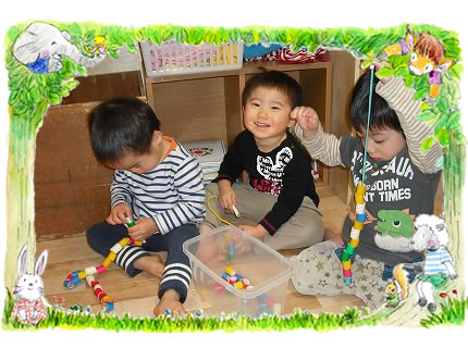 2010年の幕開けです。子どもたちは、寒さの中にも、園庭で走ったり風に向かって凧揚げをしたりと、元気いっぱいです。本日は子どもたちの、遊び・・・乳児は室内遊び、幼児はお正月遊びの様子をご紹介いたします。