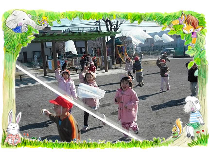 2010年の幕開けです。子どもたちは、寒さの中にも、園庭で走ったり風に向かって凧揚げをしたりと、元気いっぱいです。本日は子どもたちの、遊び・・・乳児は室内遊び、幼児はお正月遊びの様子をご紹介いたします。