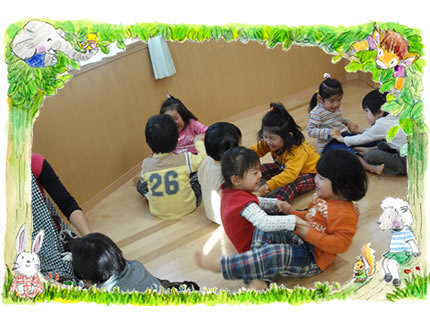 あちこちから花の便りが届く季節となりました。今年は「ちゅっちゅこっこの会」で1年間わらべうたを楽しみました。リードしてくれるのはたえこおばちゃんです。朝 顔をみるなり「早くあそぼー!」とせがまれる程です。 地域の方〜もお誘いし一緒に楽しんでいます。