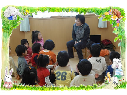 あちこちから花の便りが届く季節となりました。今年は「ちゅっちゅこっこの会」で1年間わらべうたを楽しみました。リードしてくれるのはたえこおばちゃんです。朝 顔をみるなり「早くあそぼー!」とせがまれる程です。 地域の方〜もお誘いし一緒に楽しんでいます。