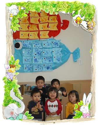 さわやかな風が気持ちのいい季節となりました。子どもたちは、園庭の大きなこいのぼりを見たり、散歩に行ってはこいのぼり探しをし、♪〜やねよ〜りた〜かいこいの〜ぼ〜りと歌っています。子どもたちの健やかな成長を祈り、各クラスでこいのぼりを飾ったり、製作しました。
