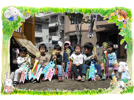 さわやかな風が気持ちのいい季節となりました。子どもたちは、園庭の大きなこいのぼりを見たり、散歩に行ってはこいのぼり探しをし、♪〜やねよ〜りた〜かいこいの〜ぼ〜りと歌っています。子どもたちの健やかな成長を祈り、各クラスでこいのぼりを飾ったり、製作しました。
