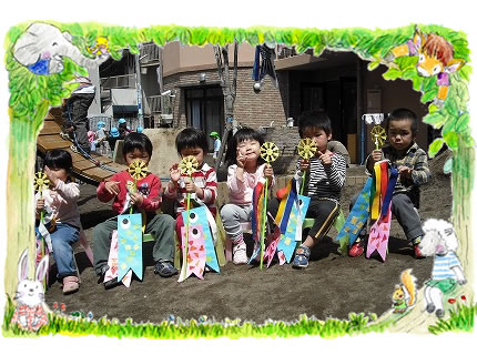 さわやかな風が気持ちのいい季節となりました。子どもたちは、園庭の大きなこいのぼりを見たり、散歩に行ってはこいのぼり探しをし、♪〜やねよ〜りた〜かいこいの〜ぼ〜りと歌っています。子どもたちの健やかな成長を祈り、各クラスでこいのぼりを飾ったり、製作しました。