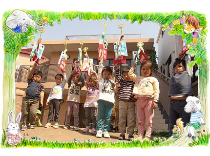 さわやかな風が気持ちのいい季節となりました。子どもたちは、園庭の大きなこいのぼりを見たり、散歩に行ってはこいのぼり探しをし、♪〜やねよ〜りた〜かいこいの〜ぼ〜りと歌っています。子どもたちの健やかな成長を祈り、各クラスでこいのぼりを飾ったり、製作しました。
