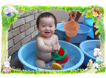 酷暑の今年は心なしかせみの声が少ないように感じています。せみもこの暑さ「たまったもんじゃないよ!」とばかりに・・・ということでもないでしょうが、鉄砲水や森林火災、熱中症など世界のあちこちで起こる災害に、自然からの警鐘を感じざるを得ません。さて、夏といったら「太陽と水と泥」がおりなす開放感たっぷりの遊びに子どもたちはおおはしゃぎです。園庭やベランダで思う存分、満喫しています。