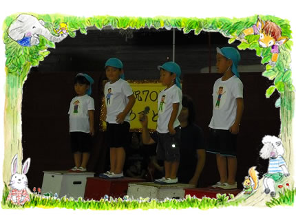ぞう組代表のリードで、みんなが声をそろえて開会の言葉をいいました。