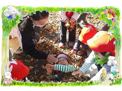晩秋の候となりました。勤労感謝の日にちなみ3,4,5才児がいつもお世話になっている関係機関に訪問し、日頃のお礼を致しました。乳児クラスは、秋の日差しの中、葉っぱやどんぐり拾いをし、秋を感じています。冬の寒さに負けない、体作りを目指しています。