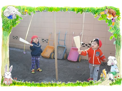 あけましておめでとうございます。本年も宜しくお願い致します。今年は「うさぎ年」です。「二兎を追う者一兎をも得ず」などとも言われますが、失敗を恐れず、消極的にならず三兎も四兎も得られる様、いろいろな事に挑戦する年にしたいですね。寒くて部屋にこもり気味の時期ですが子ども達は、お正月ならではの遊びに挑戦しています。