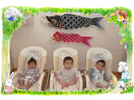 ひよこ2組 こいのぼりと一緒におすまし顔