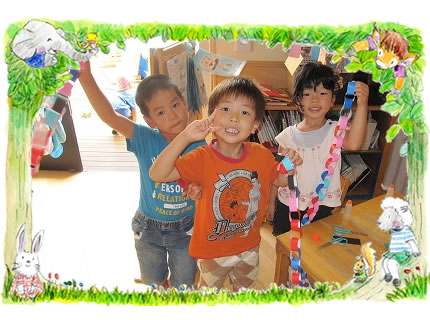 東京もとうとう梅雨が開け 本格的な夏の到来です。 子ども達は、シャワーにプールにと元気いっぱいです。 今年の「七夕」には、 「被災された方々の一日も早い復興を!」と祈るばかりです。 子ども達、そして保護者の方々からも「たんざく」を頂き 微笑ましい願い事に、現実的なお願い・・・等 笹飾りと共に、さらさらと風にたなびいていました。 「どうぞ、願いかかないますように!」