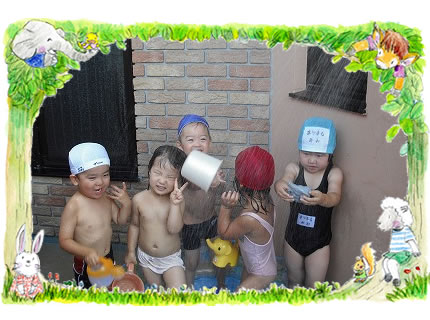 うさぎ組 シャワーの雨は楽しいなぁ〜
