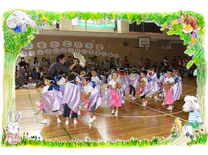 スポーツによし、読書によし、さわやかな秋空が広がります。保育園では、小学校の体育館をお借りして「風の子ひろば」(運動会)を開催いたしました。子どもも、大人も、地域の方々も一緒に楽しめる会を!と様々なプログラムを組んでいます。乳児の子ども達は、ご家族と一緒にわらべ歌等を楽しみました。幼児になると発表する意識もあり、発表を目標に力をつけるチャンスともなります。練習を積み重ね達成感から大きな自信をつけて欲しいと考え3,4,5歳は発表のプログラムを組んでいます。子ども達の満面の笑顔をご覧下さい。