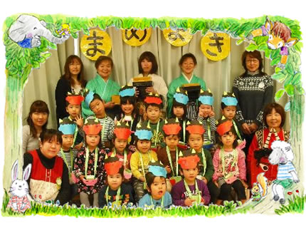 春とは名のみの、まだまだ小雪が舞っております。 インフルエンザが猛威を振るっている中ではありますが、 子ども達は、元気に豆まきをしました。 乳児には乳児にあわせ、ゆるやかに・・・ 幼児はそれにあわせ、力強く・・・ 今年の年長組の子ども達の、力強いこと 小さい子ども達の応援で、鬼を園庭から追い出しました! ありがと〜!