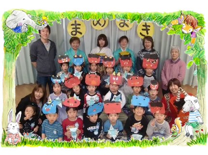 春とは名のみの、まだまだ小雪が舞っております。 インフルエンザが猛威を振るっている中ではありますが、 子ども達は、元気に豆まきをしました。 乳児には乳児にあわせ、ゆるやかに・・・ 幼児はそれにあわせ、力強く・・・ 今年の年長組の子ども達の、力強いこと 小さい子ども達の応援で、鬼を園庭から追い出しました! ありがと〜!