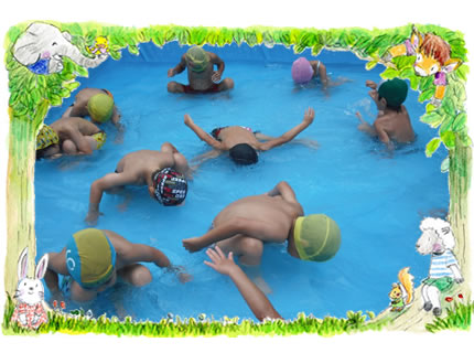 毎日暑い日が続きます。 子ども達は、「水」を十分に体験する、夏ならではの遊びを満喫しています。 「節電の夏」 当園では、20〜30分に1回の水分補給を行い、熱中症の予防をしています。又、汗腺の機能が発達するこの時期に、汗をかくことも必要と考えます。 食事時間と午睡時はクーラーを入れて体調を整え、活動中は外気と室温、湿度との兼ね合いで、 28度が保てるようにクーラーを取り入れています。
