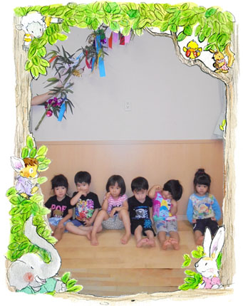 大変お待たせいたしました。H26年度初の発信となります。 今年度は保育園での「行事」のご紹介をさせていただきます。 7月7日の七夕祭りにちなみ、保育園では子どもと保護者の方々の「願い事」を短冊に書いていただき、笹に飾っていただきました。 3,4,5才はそれぞれの笹に、星や、輪つなぎ、ぼんぼりなどを製作して飾り、各ご家庭に飾っていただく為、早めに持ち帰りました。 みんなの「願い事」がかないます様に・・・