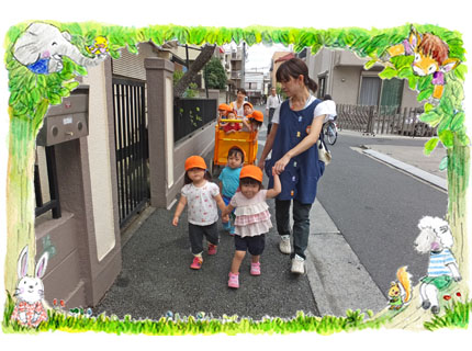 ばんび組 (保育園前)手をつないでしゅっぱーつ