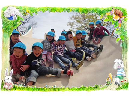 ぞう組(きょうりゅうの背中公園)背中滑り台、みんなですべれば怖くない〜