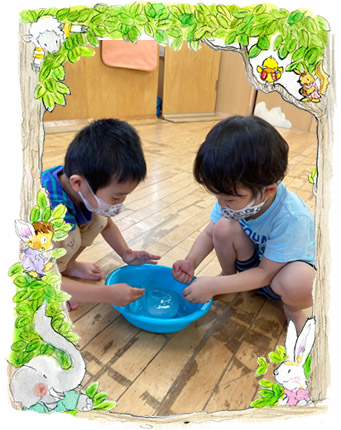 りす組「こおりって とってもつめたくて きもちいい〜」