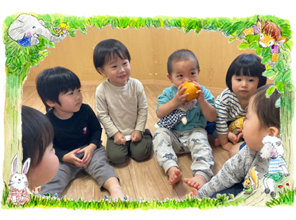 うさぎ組A「でこぽんって、あまいにおいがするね〜」