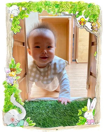 ひよこ組「お部屋の芝生きもちいいな♪」